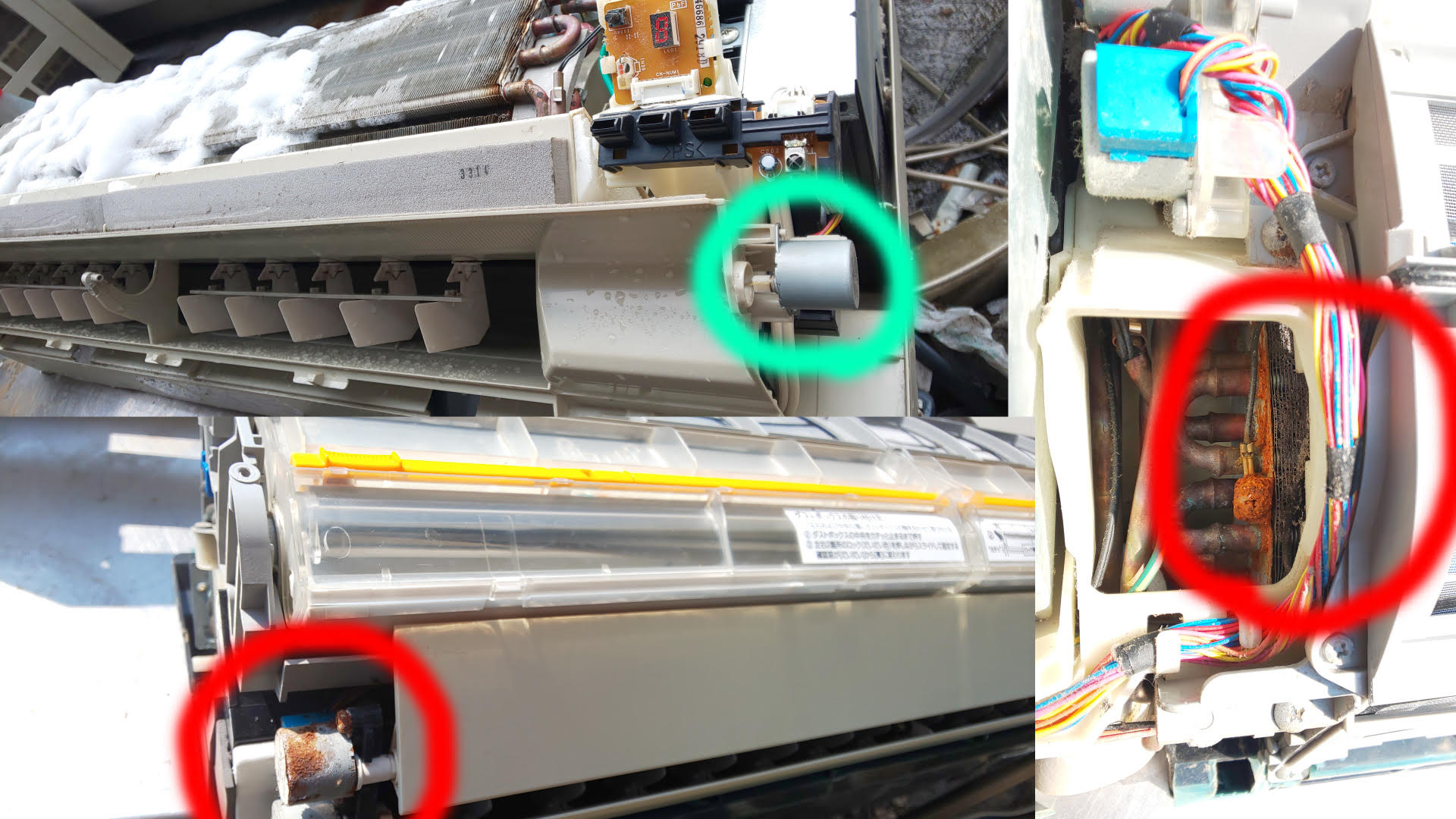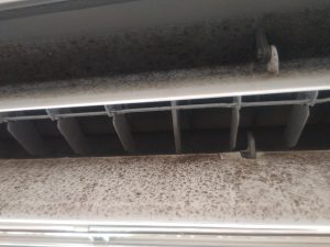 中古エアコンは汚い、カビ、ホコリが多いと言われています。実際のところ本当です。これらは実際に取り外し工事をする前のエアコンになります。