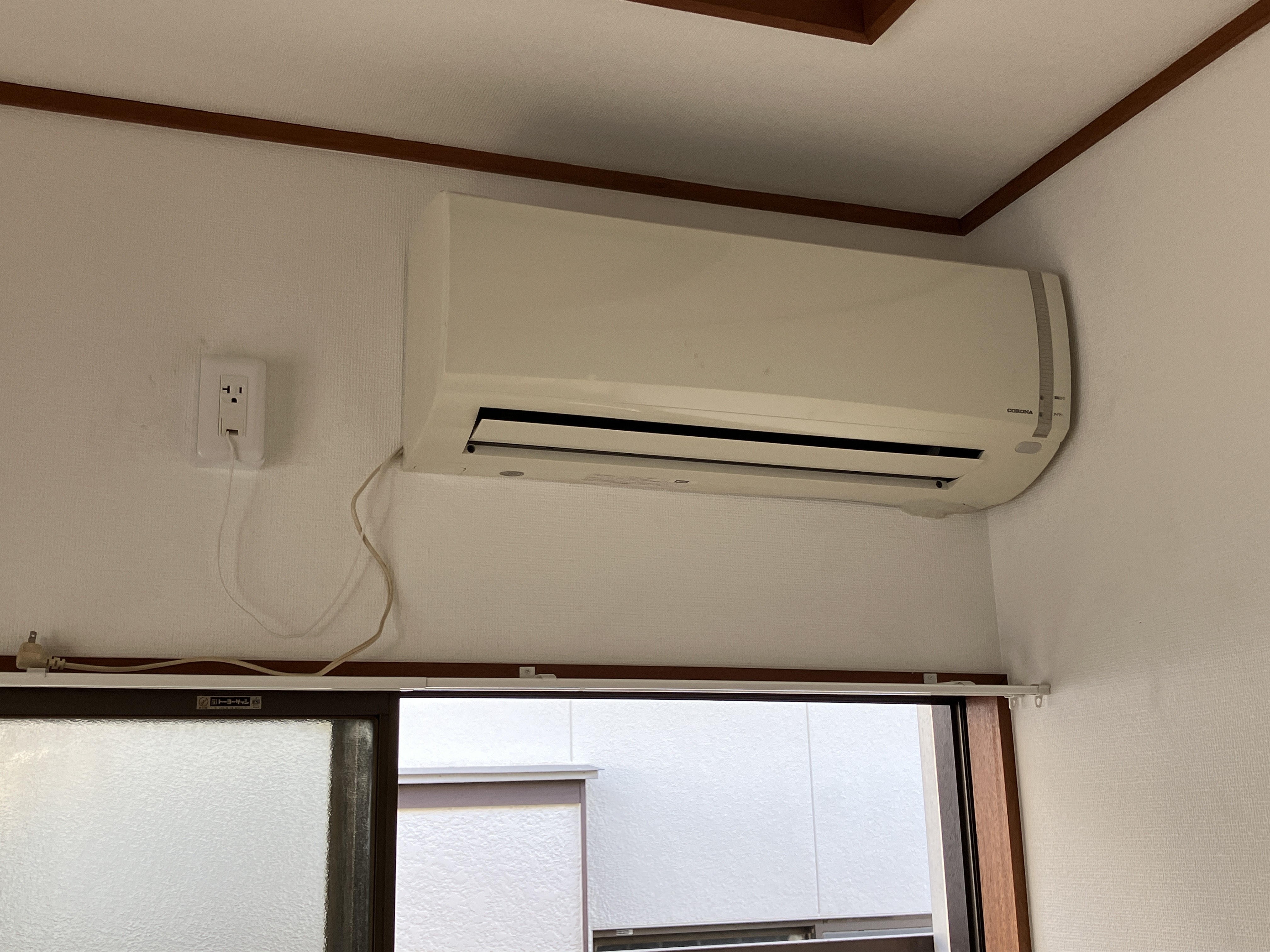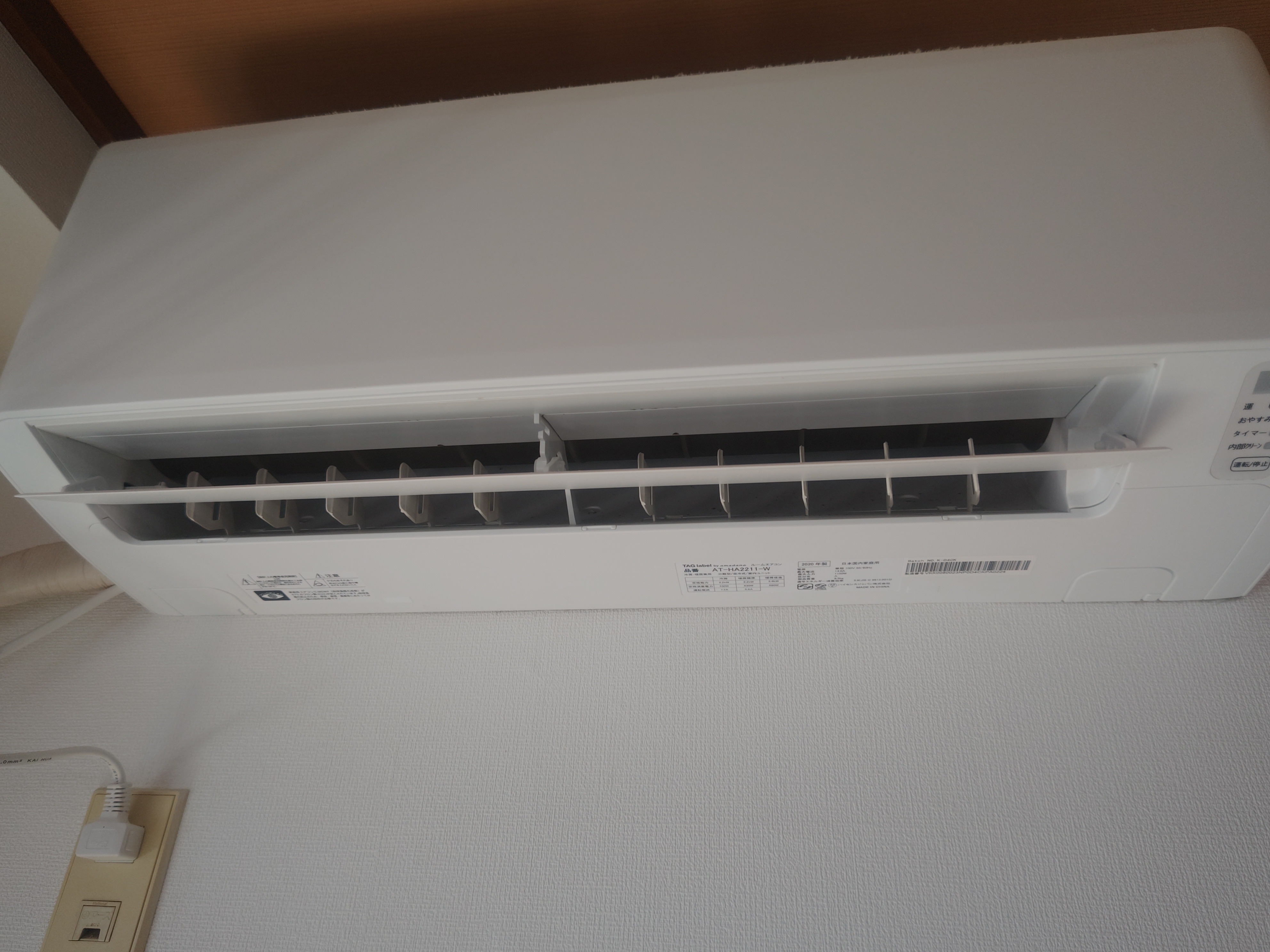 こだわりがない、という感じだったので予算ギリギリで、国内メーカーのシャープを取り付けさせて頂きました。アパート2階で標準設置でした、4月なのにだいぶ暑い日で、入居者の方が快適に過ごせる、と喜んで頂けました。