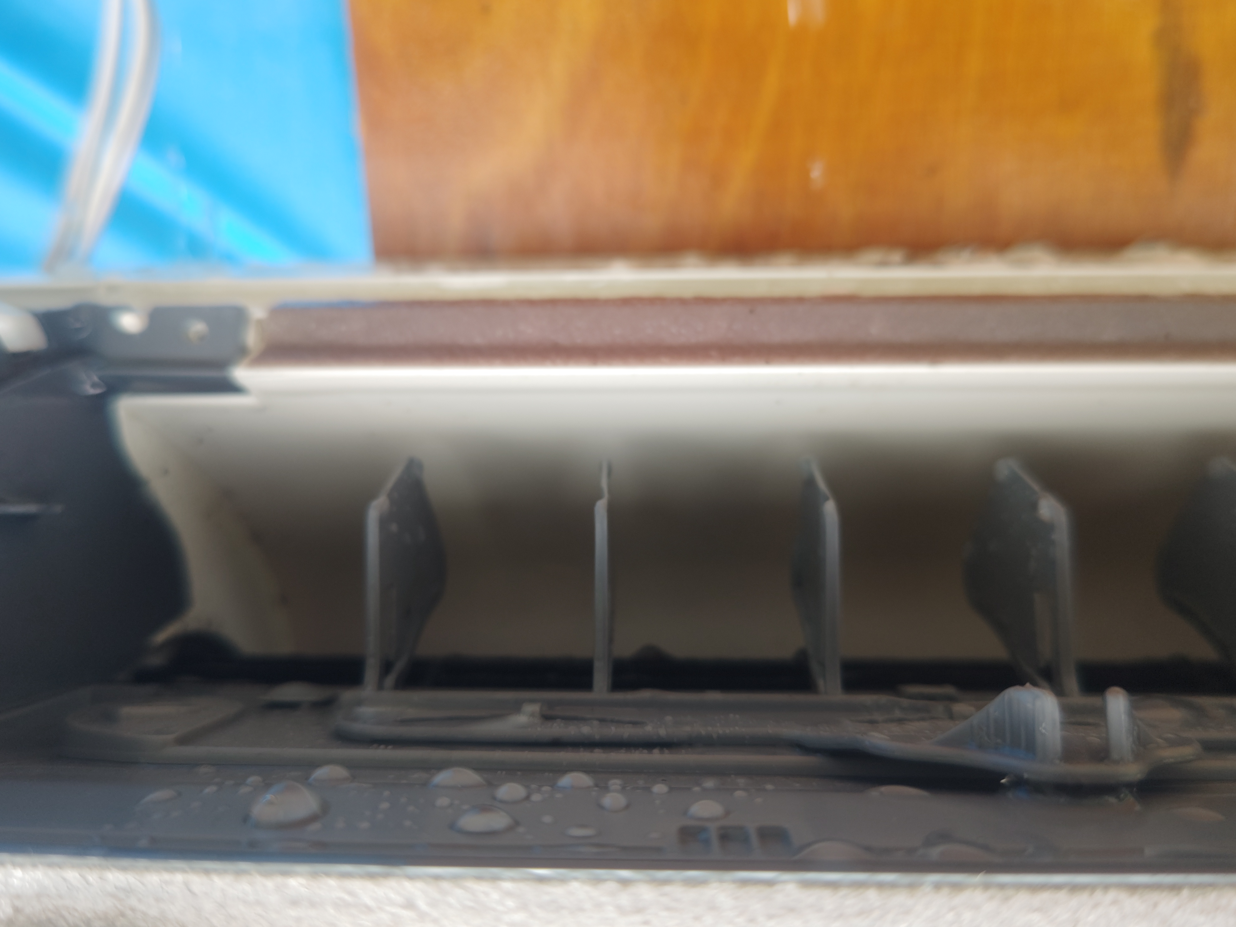 吹き出し口のカビもなく、全体的にきれいです。このエアコンは使用4年目の物になります。海外メーカーのエアコンで、なにか特別な機能があるわけではなく、純粋に普段のお手入れや使用環境がきれいだっただけです。