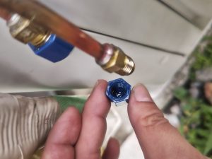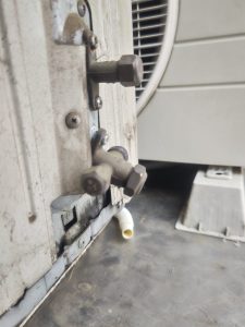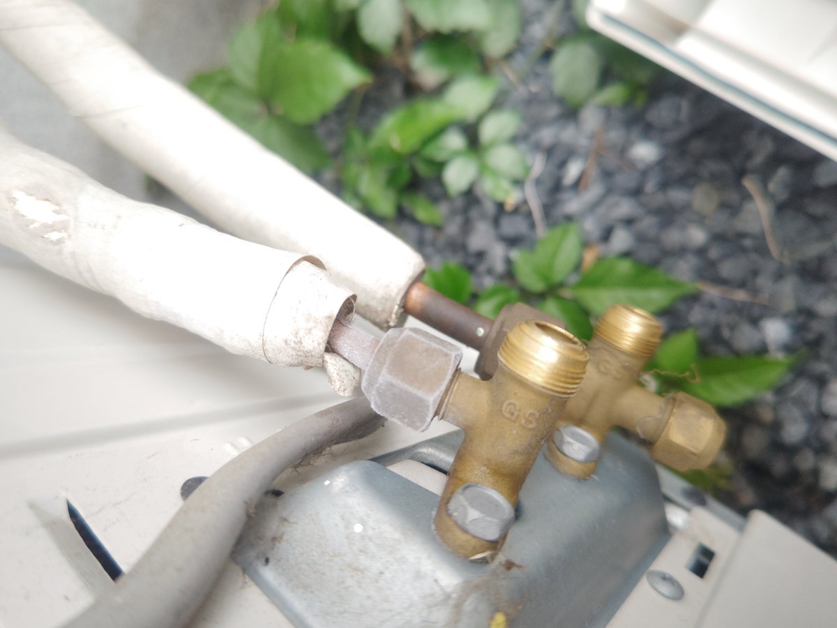 ポンプダウンという工程をしなかった、もしくは不十分だった場合このようにガスが漏れます。この画像のエアコンは2017年製のCORONAと2022年製のPanasonicでした。Panasonicのエアコンは10畳用で買取価格が5,000円でしたが、ガス漏れのせいで買取価格が1,000円になってしまいました。取り外し工事も引越し業者に任せたら安いかも、と思って頼んだそうですが当店は標準設置の取り外し工事費用が0円なので、安心して高く買取を任せたい!という場合は取り外さないでそのままお任せいただいた方がお得になるケースが多いです。