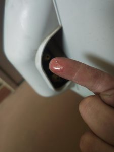 上に曲がっていると取付の時に無理な力を入れたせい。下に曲がっていると取り外しのときに無理な力を加えたせい、という特徴があります。