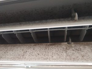 室内機の風が出てくるところにカビが発生します。私の知る限り8割くらいの方は発生します。このカビと汚れについては、クリーニング費用を請求するという買取業者もいるようですので、気になるようであれば事前に確認することが必要です。