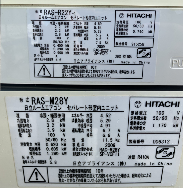 | モデル名・型番 | RAS-R22Y RAS-M28Y |