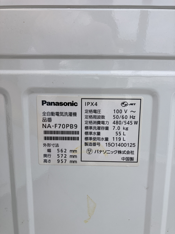| モデル名・型番 | NA-F70PB9 | ||