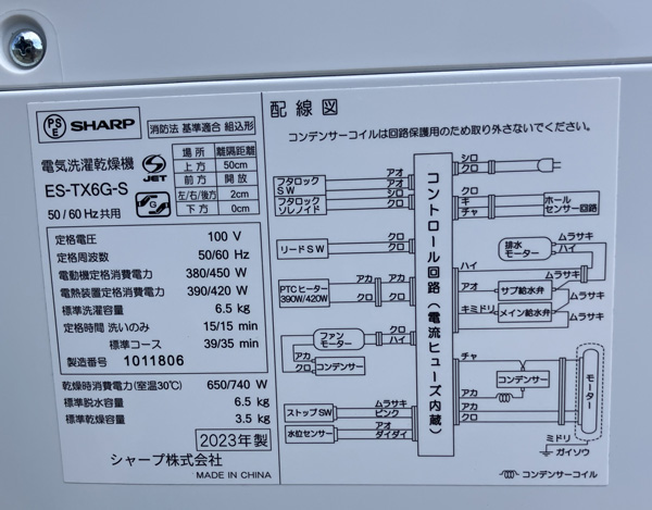 | 回収日時 | 2026年3月 | メーカー・種類 | SHARP 全自動洗濯機 |