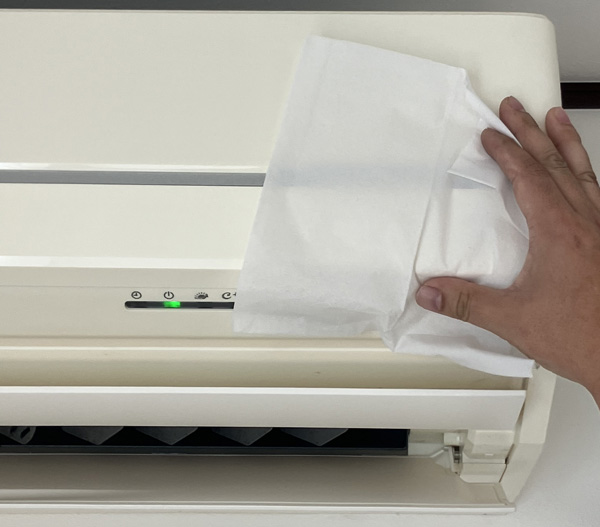 エアコン本体、リモコンの黄ばみはティッシュを横に並べて比較するとわかりやすいですよ。