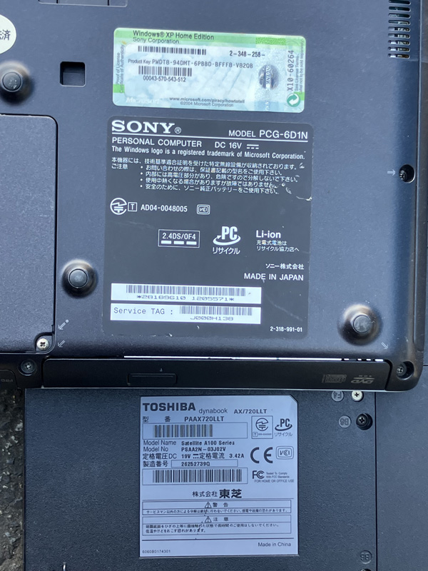| メーカー・種類 | SONY・TOSHIBA ノートパソコン |