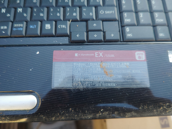 古いパソコンですので、画面割れの他に本体のどこかにひびがないか?われていないか?キーボードが取れていないか?などを確認します。ホコリなどは問題ないのでそのまま掃除しないで大丈夫です。