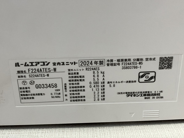 2024年製ダイキンのエアコン(F224ATES)取付工事込み77,000円で販売