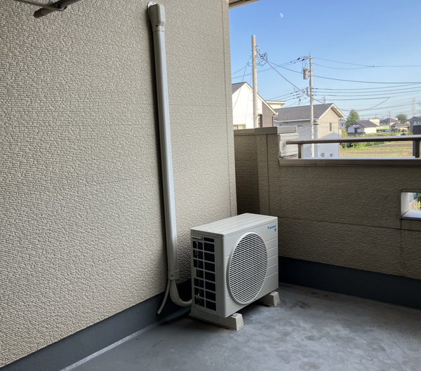 一軒家の2階でベランダ設置。もともとあった古いエアコンを撤去、買取を500円で行いました。
