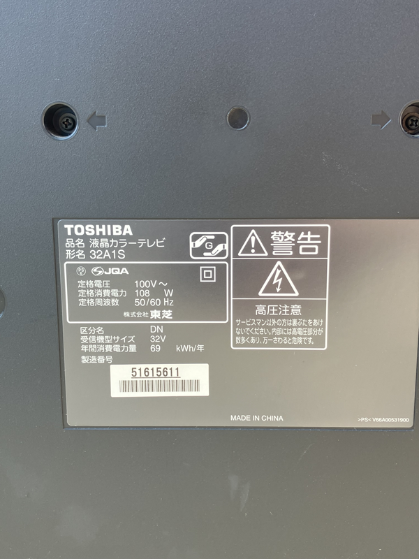 2011年製 東芝テレビ(32A1S)を販売しました。